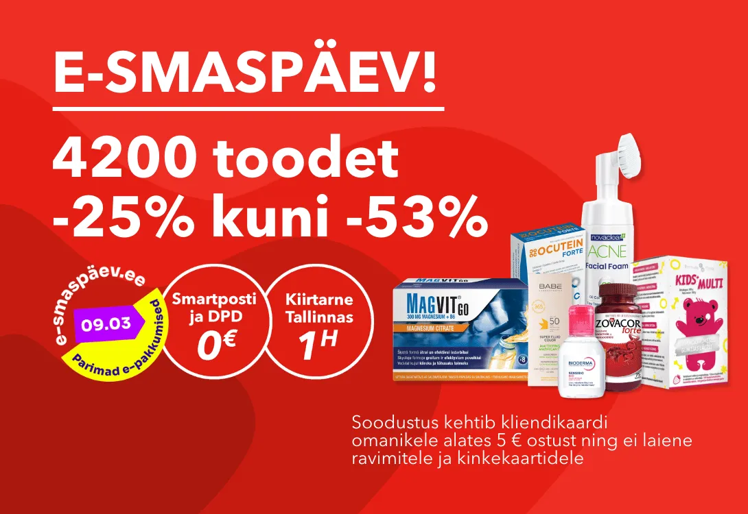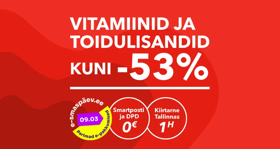 TASUTA tarne DPD ja SmartPosti pakiautomaati alates 20 EUR (v.a. ravimid)